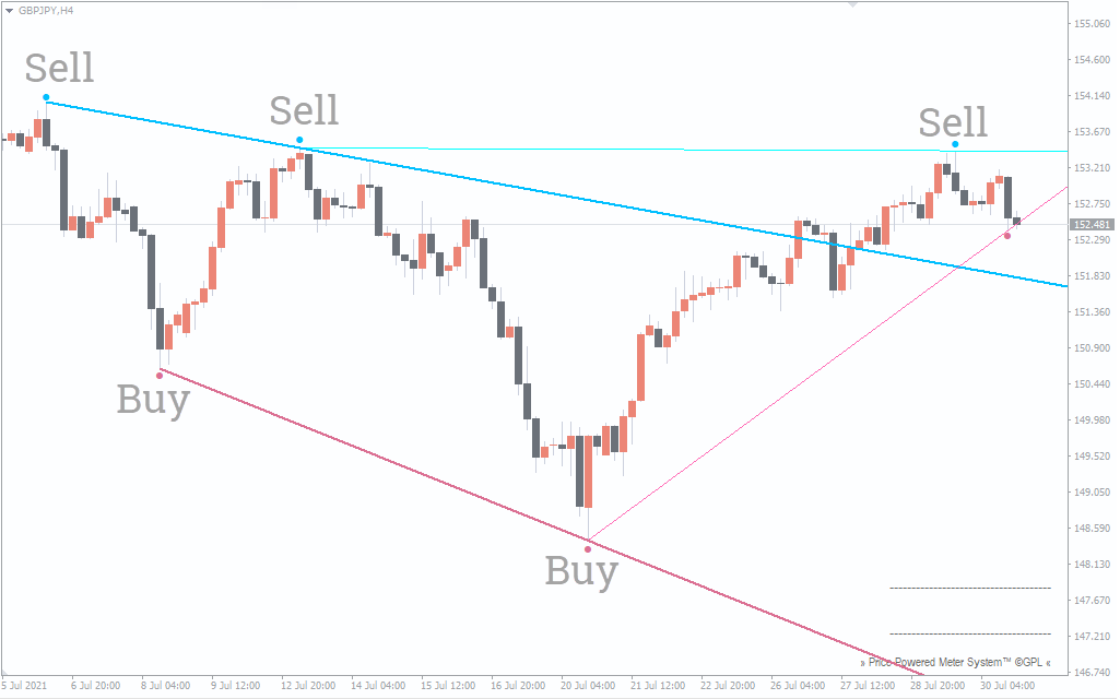 سیگنالهای معاملاتی اندیکاتور Fractals Adjustable Period Trend Lines برای MT4