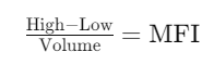 اندیکاتور Market Facilitation Index بر اساس یک فرمول ساده محاسبه میشود که به شرح زیر است: