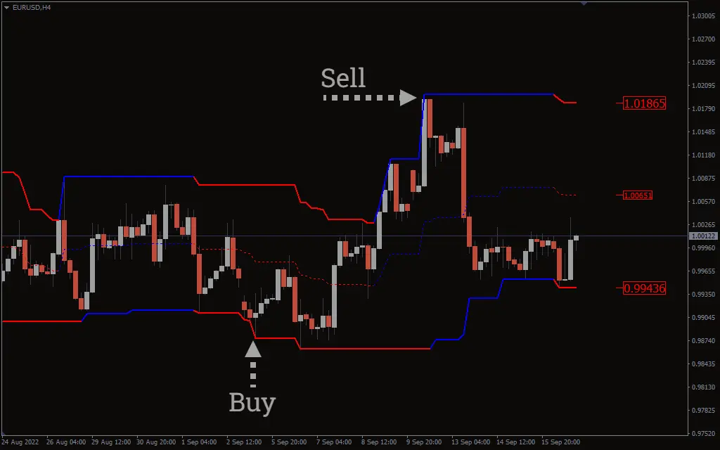 برای تعیین نقاط خرید و فروش با استفاده از اندیکاتور VR Donchian باید به رفتار قیمت نسبت به باندهای مختلف توجه کنید: