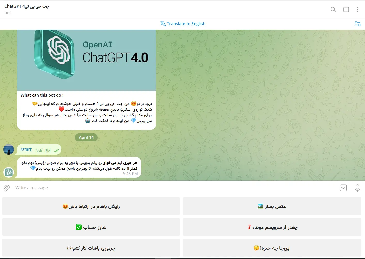اگر به دنبال بهترین ربات هوش مصنوعی تلگرام هستید که هم حرفهای باشد، هم ساده و در دسترس، چت جیپیتی4 همان گزینهای است که باید انتخاب کنید.