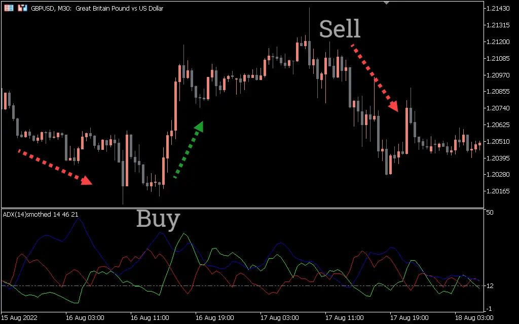 - برای تأیید بیشتر سیگنالها، میتوانید از میانگینهای متحرک (Moving Averages) همراه با اندیکاتور ADX Smoothed استفاده کنید. این ترکیب میتواند به شما کمک کند تا سیگنالهای دقیقتری دریافت کنید و از نادرست بودن سیگنالها جلوگیری نمایید.