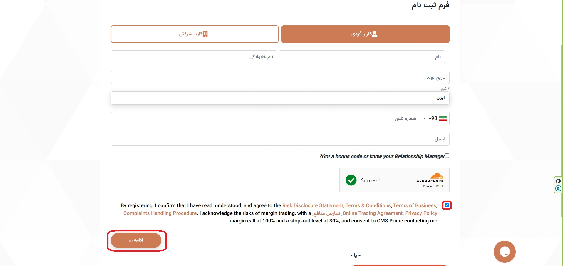 نحوه ثبتنام در بروکر سی ام اس پرایم