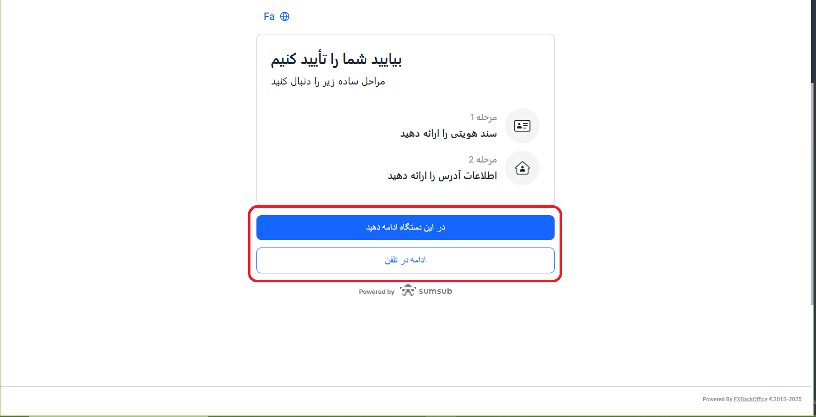 سپس با توجه به ترجیحات خود یکی از گزینه های زیر را انتخاب کنید. اگر ترجیح میدهید که ادامه مراحل را در تلفن خود انجام دهید، گزینه دوم را انتخاب کنید.
