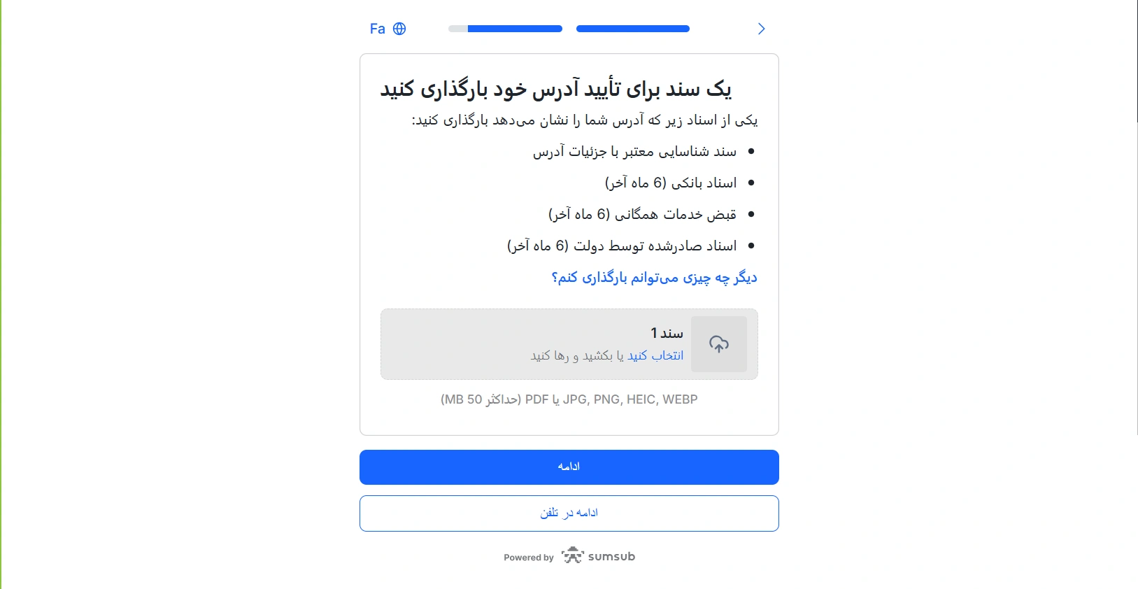 در نهایت برای تایید آدرس خود، نیاز است مدارک معتبر ارائه دهید.